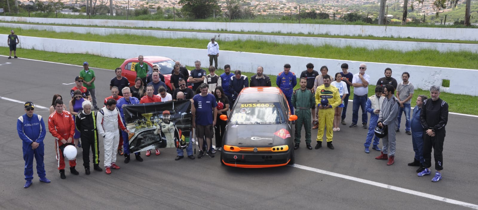 Antes de solenidade de pódio, os pilotos posaram diante do carro de Fábio Tukunaga, falecido no último dia 14 em Maringá.